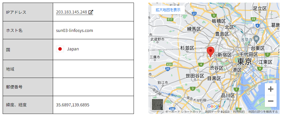 whois情報検索を使ってIPアドレスから所在地を割り出すと