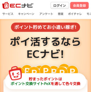 ECナビはコンテンツが豊富でゲームやアンケート、モニターでポイントを貯められるポイントサイトです。